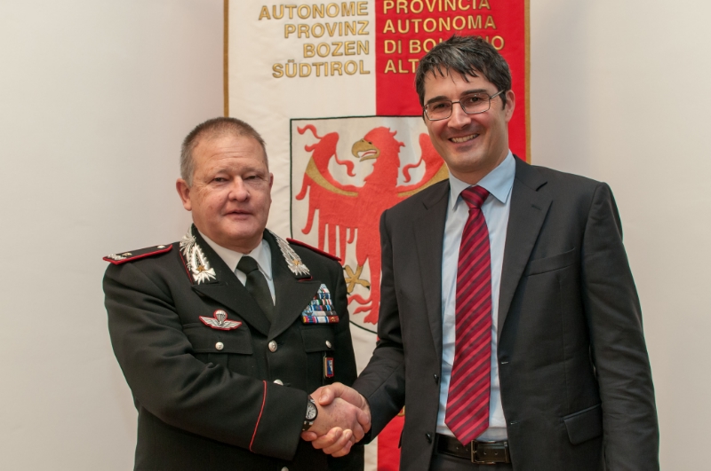 Die Zusammenarbeit zwischen Land und Carabinieri funktioniert und hat sich vor allem bei der Austragung von Großveranstaltungen immer wieder bewährt. Bei seinem Antrittsbesuch hat der aus Kaltern stammende Regionalkommandant der Carabinieri Georg Di Pauli, gegenüber Landeshauptmann Kompatscher unterstrichen, dass nicht nur die Zusammenarbeit auf institutioneller Ebene sehr gut sei, sondern dass sich in den vergangenen Jahren auch die Zusammenarbeit mit der Bevölkerung ständig verbessert habe. Di Pauli betonte, dass die Carabinieri sehr viel Wert auf eine flächendeckende Zweisprachigkeit legen. In diesem Zusammenhang verwies der General darauf, dass es bei den Stellenausschreibungen sehr wenige deutschsprachige Bewerber gebe. „Es ist schade, dass sich nur sehr wenige deutschprachige Südtiroler für die Stellen bei den Carabinieri bewerben, auch weil die Karriereaussichten gut wären", so Landeshauptmann Kompatscher.
