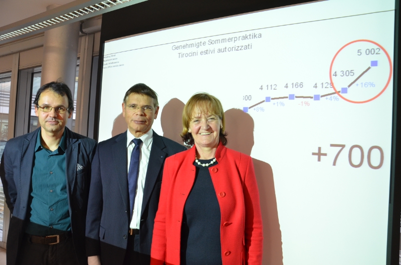 Im Mai hat die Landesarbeitskommission unter dem Vorsitz der Arbeitslandesrätin Martha Stocker versuchsweise ermöglicht, dass auch jene Betriebe, die keine abhängig Beschäftigten haben, Jugendliche für ein Sommerpraktikum beschäftigen können. Gleichzeitig wurde die Gesamtzeit für Praktika von sechs auf zehn Monate angehoben. Zur Bewertung dieser Maßnahmen wurde die Beobachtungsstelle für den Arbeitsmarkt beauftragt, die Zufriedenheit der Praktikanten und die Auswirkungen auf den Arbeitsmarkt zu erheben.
