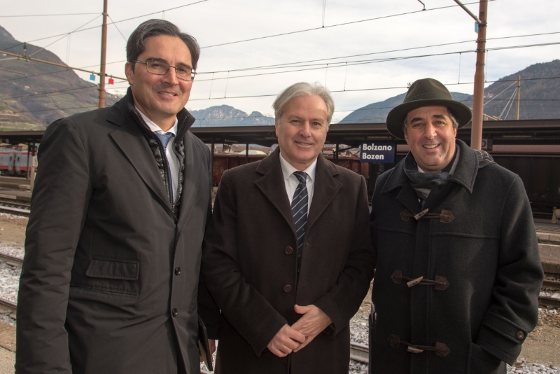Um dem Jahrhundertprojekt der Umgestaltung des Bozner Bahnhofsareals den Weg zu ebnen, haben Landeshauptmann Arno Kompatscher und Bürgermeister Luigi Spagnolli heute (11. Dezember) eine Kooperations-Vereinbarung unterzeichnet. Gleichzeitig hat man mit dem Bahnhofs-Verantwortlichen der Eisenbahn (FS), Carlo De Vito, vor Ort die nächsten Schritte vereinbart.