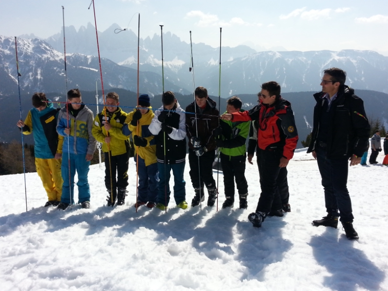 Nachdem sie in den vergangenen Wochen die Theorie-Einheiten durchlaufen haben, war heute für über 30 Schülerinnen und Schüler aus Bozen, Klausen und Brixen im Lawinenübungscamp auf der Plose der Praxisworkshop angesagt. Ausgerüstet mit Suchgerät, Sonde, Schaufel probten die Schüler den Notfall.