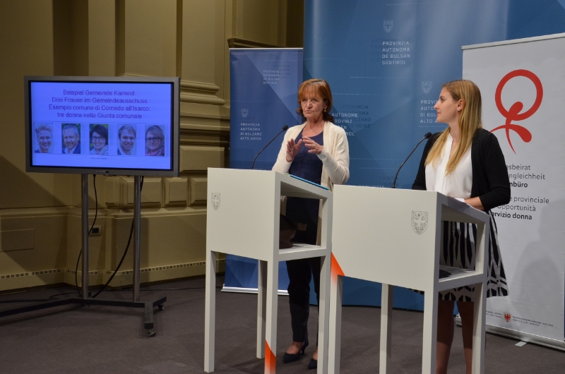 Eine positive Bilanz über den Verlauf der Gemeinderatswahlen und über die Bildung der Gemeindeausschüsse aus Frauensicht haben am heutigen Donnerstag (25. Juli) Landesrätin Martha Stocker und die Präsidentin des Landesbeirates für Chancengleichheit Ulrike Oberhammer gezogen: In den Gemeinderäten sind im Vergleich zu 2010 5,8 Prozent mehr Frauen vertreten, in den Gemeindausschüssen 11,71 Prozent.