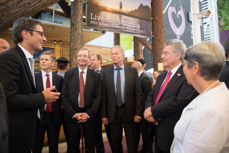 Expo 2015: LH Kompatscher mit Bundespräsident Fischer am Südtirol-Stand
