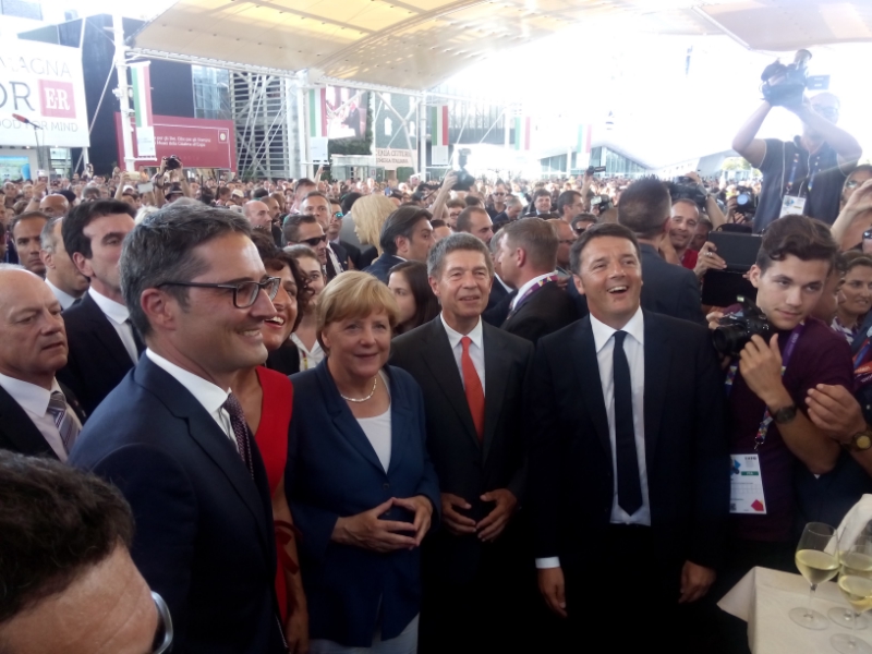 Die deutsche Bundeskanzlerin Angela Merkel stattete heute (17. August) am späten Nachmittag der Expo in Mailand einen Besuch ab. Auf ihrem Rundgang durch die Ausstellung begleitete sie der italienische Regierungschef Matteo Renzi. Dabei besuchten sie auch den Südtirol-Stand. Renzi beglückwünschte Kompatscher zum gelungenen Expo-Auftritt.