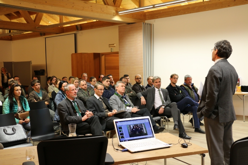 "Jagd ohne Ehrfurcht und ethisch korrekte Einstellung ist nicht zukunftsfähig", mahnte Wildbiologe Paolo Molinari in seinem einstündigen Vortrag "Weidwerk heute: Was will der Jäger? Was die Gesellschaft?" an. Die Jagd, führte er aus, habe viele dunkle Seiten, die bewältigt werden müssten, aber auch viele positive, auf denen Jungjäger aufbauen können und die nach außen kommuniziert werden sollten. "Die Jagd muss gut ausgeführt werden", appellierte er an die Jungjägerinnen und Jungjäger. So solle sich die Jagd etwa nicht auf Trophäenjagd beschränken; in der Dämmerung und in der Nacht und mit unerlaubten Hilfsmitteln wie Lichtquellen und Nachtsichtgeräten dürfe nicht geschossen werden, ein Schuss müsse immer sicher angebracht werden. "Jagd ist nicht Spaß oder Spiel oder ein Hobby", unterstrich der Wildbiologe, der selber Jäger ist: "Im Mittelpunkt der Jagd sollen Ziele wie Erhaltung von Lebensräumen und Wildbeständen stehen".