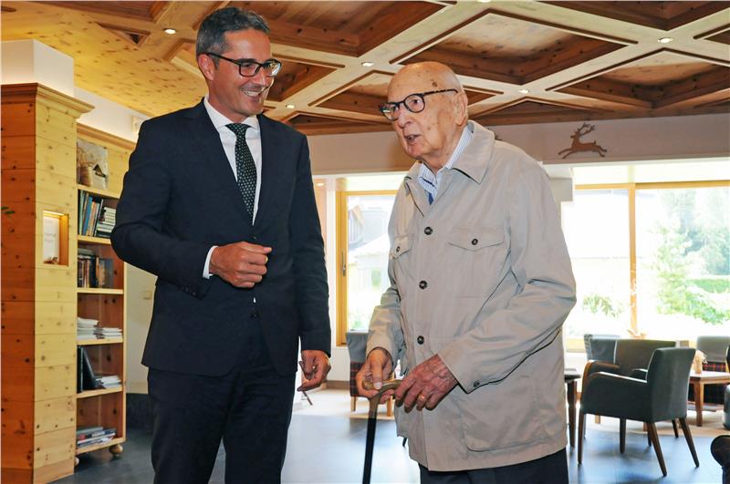 Wie schon in den vergangen Jahren verbringt der ehemalige Staatspräsident Giorgio Napolitano mittsommerliche Urlaubstage in Bad Moos in Sexten. Am Samstag stattete Südtirols Landeshauptmann Arno Kompatscher dem ehemaligen Staatspräsidenten und Senator auf Lebenszeit in dessen Feriendomizil einen informellen Besuch ab.