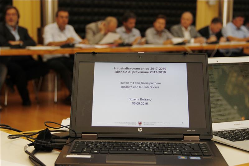 Heute Nachmittag (6. September) haben Landeshauptmann Arno Kompatscher und die Landesräte Christian Tommasini, Richard Theiner, Florian Mussner, Waltraud Deeg, Arnold Schuler und Martha Stocker im Palais Widmann die Sozialpartner getroffen, um den Haushaltsvoranschlag 2017 zu erörtern.