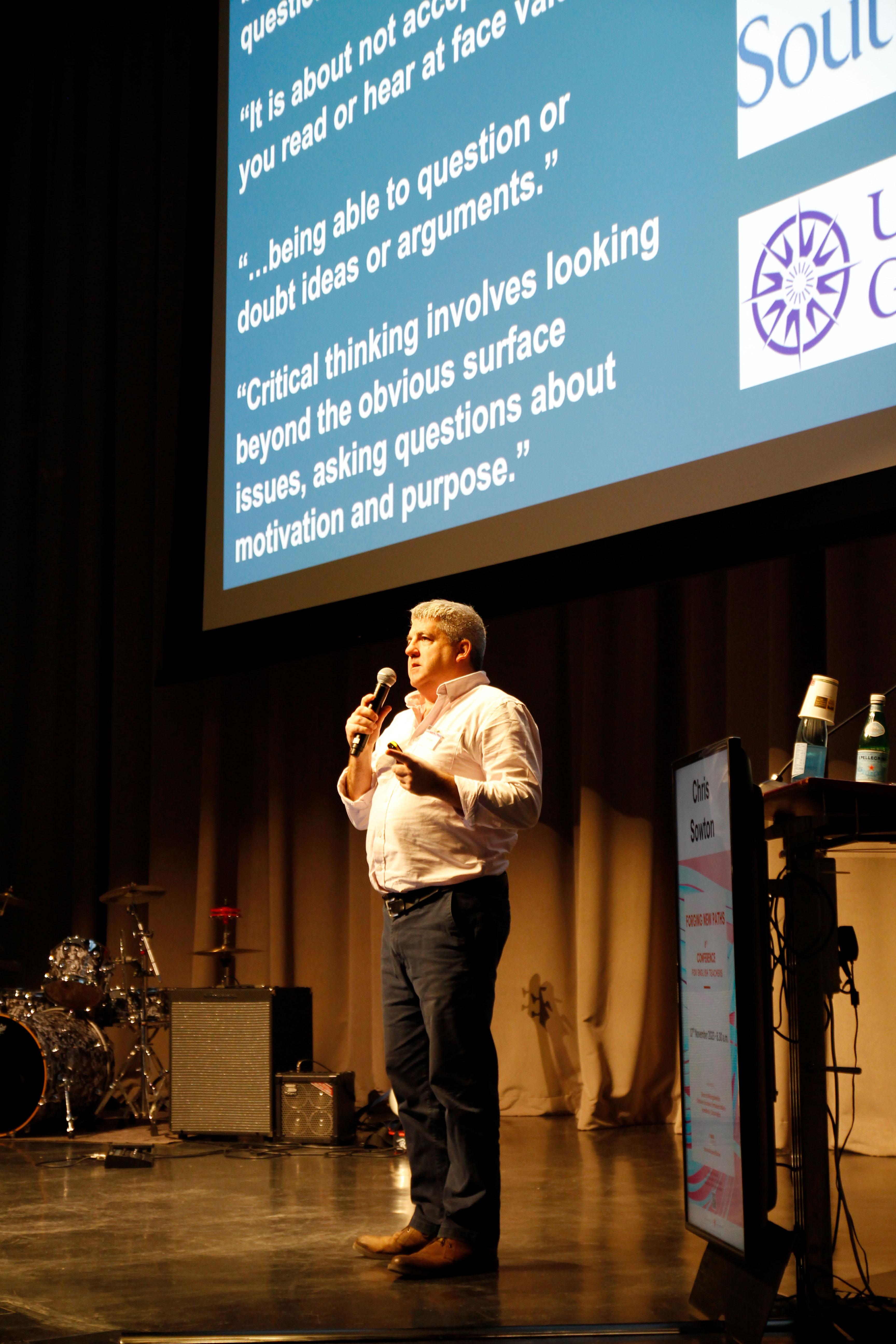 Ausgehend vom Europäischen Qualifikationsrahmen für lebenslanges Lernen (EQR) verwies Chris Sowton auf die Bedeutung der Förderung kritischen Denkens als zentraler Bildungsaufgabe. Er zeigte anhand zahlreicher Beispiele auf, wie kritisches Denken ohne großen Aufwand aber auf wirksame Weise im Fremdsprachenunterricht gefördert werden könne.