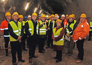 Le particolari misure di sicurezza nel cantiere della circonvallazione di Ora, che prevede tra l'altro la costruzione di tre tunnel, sono state illustrate dagli assessori provinciali Florian Mussner e Luisa Gnecchi nel sopralluogo compiuto oggi (20 marzo) nel tunnel Castelfeder, scavato quasi per metà. Proprio durante l'ultima esplosione si è verificata una improvvisa frana di materiale. La zona viene tenuta sotto controllo.