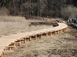 Lavori in corso per la posa delle nuove passerelle di legnoI lavori per la creazione della nuova passerella stanno iniziando in questi giorni, e vengono coordinati dai tecnici dell'Ufficio provinciale ecologia del paesaggio e dell'Ispettorato forestale Bolzano I. "Grazie a queste nuove opere - spiega Marie Luise Kiem, dell'Ufficio ecologia del paesaggio - tutta la zona verrà rinnovata non soltanto dal punto di vista estetico. La passerella e il sistema di laghetti consentirà infatti di migliorare i collegamenti tra il lago e il biotopo, offrendo anche un nuovo habitat per pesci, libellule e anfibi".