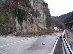 La frana si é verificata a circa 300 metri dalla galleria sulla Statale 12 a Campodazzo, i massi di maggiori dimensioni staccatisi dalla roccia sovrastante raggiungono, secondo il geologo provinciale Ludwig Nössing, le dimensioni di mezzo metro cubo. Due auto sono finite contro i massi, una persona - secondo i primi accertamenti - è rimasta ferita in modo lieve. L'assessore provinciale ai Lavori pubblici Florian Mussner ha subito disposto la chiusura della strada.