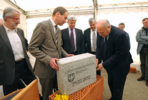 Oggi, mercoledì 21 marzo 2012, presso il cantiere della zona scolastica di Brunico il presidente della Provincia Luis Durnwalder e gli assessori provinciali Florian Mussner e Hans Berger hanno posato la prima pietra per la realizzazione della nuova sede dell'Istituto per la formazione alberghiera con convitto.