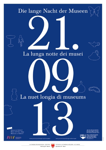L'edizione 2013 della Lunga notte, l'ottava, si presenta più che mai ricca e varia. Un'occasione unica per visitatori e visitatrici di tutte le età per scoprire in modo accattivante decine di musei disseminati sul territorio altoatesino.