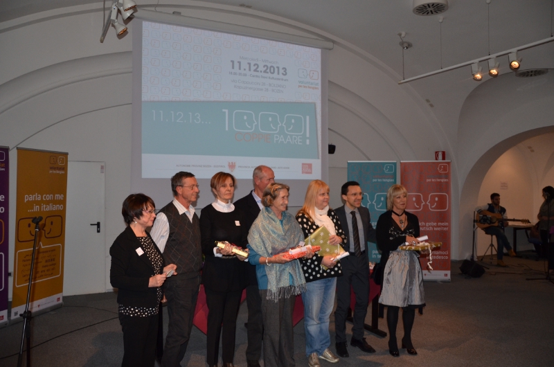 Era affollatissima, mercoledì sera 11 dicembre 2013, la sala del Centro Trevi dove quasi 200 Volontari e Apprendenti hanno partecipato all'incontro che ha sancito il raggiungimento delle 1.000 coppie linguistiche del progetto "Voluntariat per les llengües" proosso dal Dipartimento Cultura italiana della Provincia in Alto Adige.