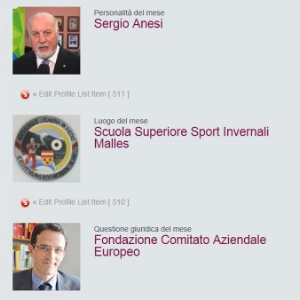 Questo mese i tre nuovi profili riguardano rispettivamente il trentino Sergio Anesi, organizzazore dell'Universiade invernale, il tema giuridico del mese è incentrato sul Comitato Aziendale Europeo ed infine la pagina web dedica la propria attenzione alla Scuola Superiore per gli Sport Invernali di Malles.