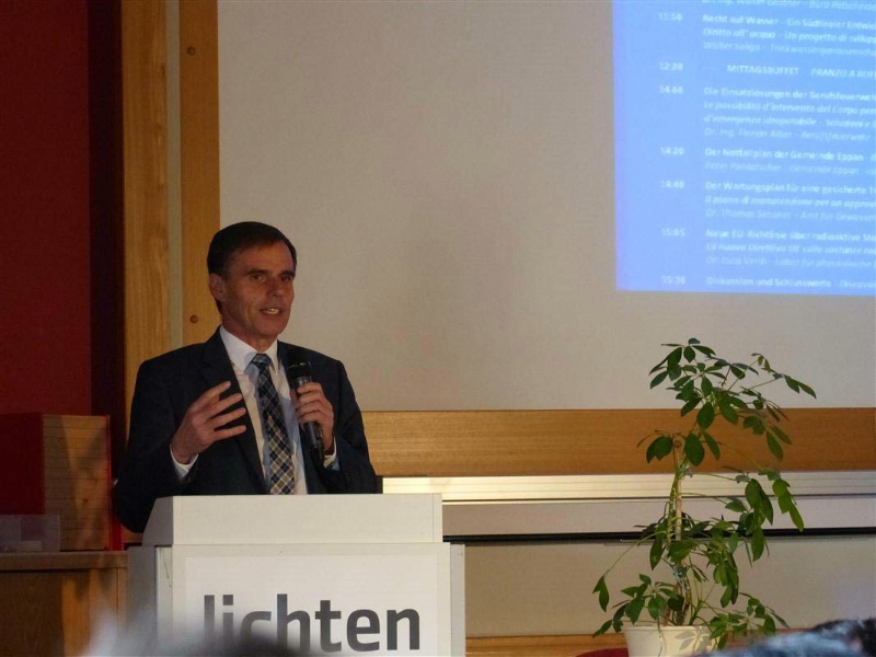 L'argomento centrale del forum 2013, come ricorda Thomas Senoner, direttore dell'Ufficio gestione risorse idriche, è rappresentato dal Piano d'emergenza per impianti di approvvigionamento idropotabile del quale devono disporre tutti i gestori di un acquedotto idropotabile pubblico.