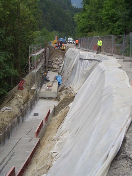 Da qui la necessità dell'allargamento della sede stradale ai fini della sicurezza di mezzi in transito. Sul lato di valle per la lunghezza di 170 metri, tra il km 3+230 ed il km 3+400, sono in fase di costruzione nuovi muri di sostegno in cemento armato fino a 6 metri di altezza con fondazione su micropali. A tal fine è stata demolita una parte della strada esistente con chiusura totale della strada per ragioni di sicurezza.