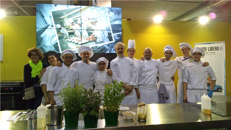 Sabato 23 e domenica 24 aprile la scuola alberghiera “Cesare Ritz” di Merano ha preso parte alla Fiera del Tempo Libero. Un team di 6 ragazze e ragazzi del 5° anno, supportati da 2 ragazzi del 2° anno, con la supervisione degli insegnanti di cucina, Luigi Ottaviano e Ferdinando Iapichino, hanno proposto lo show cooking: “La Ritz tra tradizione ed innovazione”.