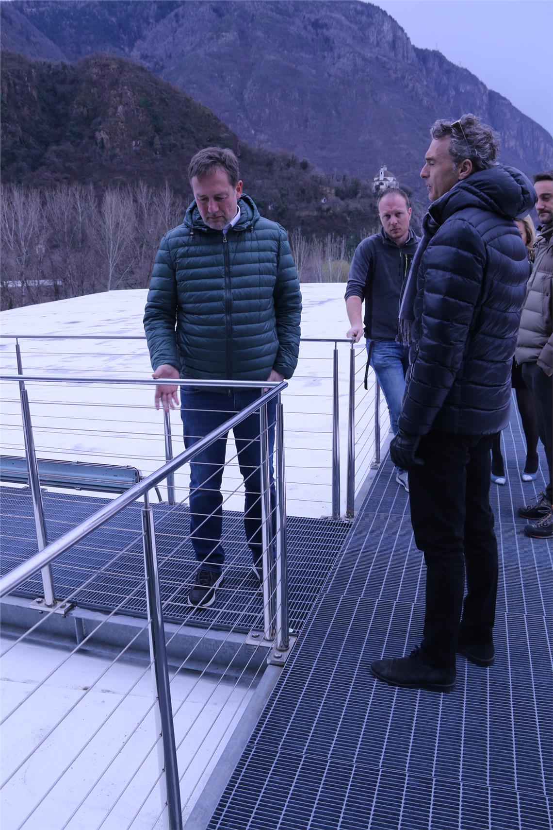 Nei mesi scorsi l'edificio che ospita Eurac Research in via Druso 1 a Bolzano è stato sottoposto ad una serie di interventi di manutenzione urgente. Ne ha preso visione questa mattina (26 febbraio) l'assessore provinciale all'edilizia pubblica e patrimonio Massimo Bessone accompagnato dai suoi funzionari assieme ai responsabili dell'ente e all'architetto Valentino Andriolo che ha redatto il progetto esecutivo. "Siamo intervenuti con tempestività a tutela delle strutture dell'edificio, patrimonio pubblico, e al fine di garantire lo svolgimento delle attività di questo importante centro di ricerca" afferma l'assessore Bessone sottolineando che "la Provincia agisce prontamente e investe importanti risorse per risolvere le necessità che si presentano con l'esecuzione urgente dei lavori necessari".