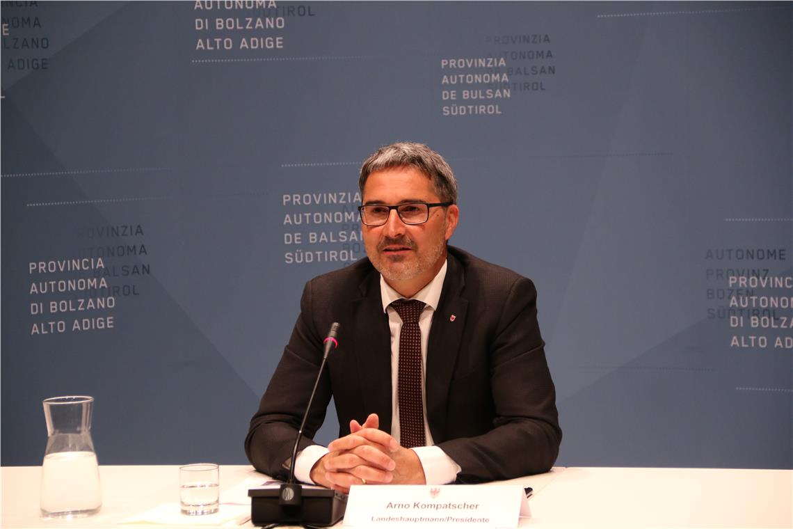 Il presidente Arno Kompatscher nella conferenza stampa virtuale ha spiegato le misure di sostegno alle piccole imprese.