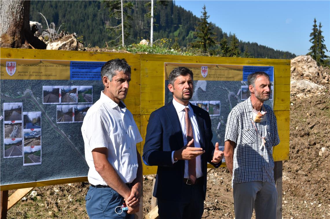 Sopralluogo dell’assessore Alfreider ai due tratti della strada statale presso il lago di Carezza che sono stati messi in sicurezza e rappresentano un modello da seguire.