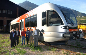 L'assessore Widmann prende in consegna il primo treno per la Venosta: da oggi i test