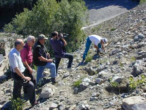 Da sinistra: Paolo Cornelini, Giulio Galliano (Filmstudio RES), Giuliano Sauli, il cameraman Giona Messina e il tecnico dell'Azienda sistemazione bacini montani Benno MassaroGli interventi di successo a protezione dei pendii e l'utilizzo di misure di ingegneria biologica verranno illustrate ai cittadini della Regione Lazio con un film girato in varie località dell'Alto Adige. Il lavoro sarà pronto in dicembre e prevede una distribuzione attraverso 500 videocassette e Dvd. "Gli interventi filmati in Alto Adige si sono concentrati sull'utilizzo della combinazione legno-piante e di altri materiali naturali nella messa in sicurezza dei pendii", spiega Willigis Gallmetzer della Ripartizione provinciale Opere idrauliche, che ha accompagnato la troupe laziale nele varie tappe e nel giardino di piante che la Ripartizione provinciale cura a Prato Stelvio per utilizzarle lungo i versanti montani.