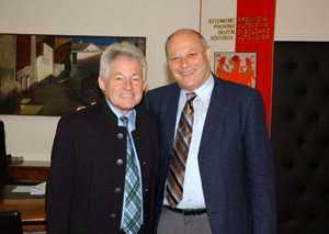 Durnwalder con il Presidente dell'Austria Superiore Josef PühringerNel corso della sua visita ufficiale nel Land Tirolo, il presidente dell'Austria Superiore Josef Pühringer ha deciso di prolungare il viaggio sino in Alto Adige, dove questa mattina ha incontrato il Presidente della Giunta provinciale Luis Durnwalder. La lunga chiacchierata tra i due esponenti governativi si è svolta a Palazzo Widmann. Dopo aver fatto il punto della situazione politica per quanto riguarda sia l'Alto Adige che l'Austria Superiore (in entrambe le zone le elezioni locali si sono svolte lo scorso anno), Durnwalder e Pühringer si sono soffermati sulle opportunità di collaborazione nell'ambito del Comitato delle Regioni dell'Unione Europea, di cui entrambi fanno parte. Sempre in tema di Ue, il recente allargamento ad est rischia di creare non pochi problemi alla regione austriaca, che è una zona di confine, ma sia Durnwalder che Pühringer vedono il processo in atto più come un'opportunità che come un problema.