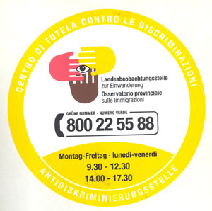 L’Osservatorio provinciale sulle discriminazioni ha già elaborato nei mesi scorsi uno studio sui giovani immigrati in Alto Adige. Sia l’Osservatorio che il centro di tutela contro le discriminazioni hanno sede presso la Formazione professionale italiana, in via S. Geltrude,3 a Bolzano.