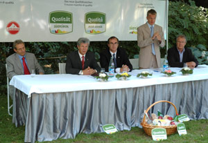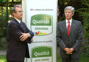 Gli assessori provinciali Werner Frick e Hans Berger nel corso di una conferenza stampa questa mattina hanno presentato il nuovo marchio di qualità per gli alimenti altoatesini: "Una tappa fondamentale del percorso per garantire la qualità del settore alimentare locale ed un successo della Provincia nei confronti di Bruxelles".