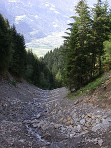 Solo per mettere in sicurezza l'area si sono resi necessari 120 metri di rete paramassi, a cui si è aggiunta la realizzazione di una apposita via di accesso per poter svolgere gli interventi, ormai indispensabili: "La zona è tra le più soggette a smottamenti dell'intera provincia", conferma il direttore della Ripartizione Opere idrauliche Rudolf Pollinger. Si tratta di frane che raggiungevano anche il fiume Adige e che hanno richiesto la sostituzione dei dieci vecchi sbarramenti, in parte danneggiati, con sei nuove barriere di cemento e tre di sassi. L'intervento è stato completato con apposite infrastrutture che limitano l'erosione del pendio.