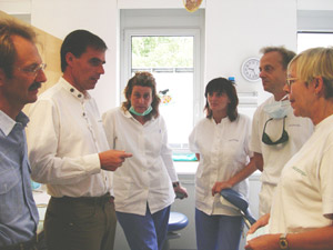 A Silandro, nella sede del distretto Media Val Venosta, il progetto pilota è partito dal primo agosto. Due dentisti liberi professionisti - Birgit Bode e Kurt Dietrich-Bisello - sono presenti nell’ambulatorio distrettuale per complessive 21 ore settimanali. Oggi (giovedì 4) l'assessore provinciale alla Sanità e politiche sociali Richard Theiner si è recato in visita al distretto insieme a Enrica Dal Negro, Primario del servizi di medicina di base dell’Azienda sanitaria di Merano, per verificare lo stato di realizzazione del progetto pilota.