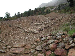 Il secondo rio risistemato è il Saldura, a circa 2.300 metri s.l.m.. Un fossato laterale del torrente era soggetto infatti a frequenti esondazioni, che provocavano la deposizione di materiale sul sentiero che porta alla baita Oberettes e nello stesso rio. Gli interventi sono stati resi più difficoltosi dalla difficile posizione del cantiere, raggiungibile solo a piedi o, per il trasporto materiale, in elicottero. I lavori effettuati hanno messo a nudo un’ampia superficie terrosa, che è stata rinverdita con speciali procedimenti e con sementi elaborate a questo scopo specifico dal professor Florineth dell’Università di Vienna. L’utilizzo di arbusti nani rappresenta una novità per queste altitudini, e tuttavia, come spiega il dott. Pollinger, “la Ripartizione Opere idrauliche li utilizza sempre di più negli ultimi anni, perché da un lato facilitano la crescita di una vegetazione spontanea, e dall’altra pongono un freno alle esondazioni in caso di prolungato maltempo”.