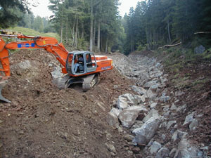 Con massi ciclopici viene messo in sicurezza il rio MeltinaA seguito delle forti piogge del 2000 e dei due anni successivi la zona del rio Meltina è stata interessata da frequenti smottamenti, favoriti da un terreno già instabile, come spiega il direttore della Ripartizione provinciale Opere idrauliche Rudolf Pollinger. Per stabilizzare l'intera area, i tecnici della Ufficio Sistemazione bacini montani sud dallo scorso luglio sono al lavoro e hanno realizzato varie misure di sicurezza. In primo luogo è stato protetto il corso superiore del rio Meltina, nel tratto di circa 150 metri che corre sopra la strada provinciale per San Genesio, cercando di realizzare interventi che si armonizzano il più possibile con il paesaggio e la fauna, sottolinea il direttore dell'Ufficio Hanspeter Staffler. Anche gli argini sono stati conservati nella conformazione irregolare e piatta che è più compatibile con l'ambiente.
