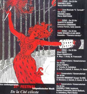 Nell’ambito del 31° Festival di Musica Contemporanea, che avrà inizio venerdì 21 ottobre, sono previste due rappresentazioni, sabato 22 ottobre, dello spettacolo “Il Filobus numero 75” di Marco Mantovani, presso il Liceo Scientifico “Evangelista Torricelli”, in via Rovigo,42 a Bolzano.