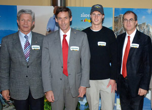 Andreas Seppi, nuovo ambasciatore del marchio Alto Adige, con gli assessori Hans Berger, Thomas Widmann e Werner Frick (Foto USP/Pertl)Il tennista di Caldaro, tra i primi 70 della classifica ATP, si appresta ad iniziare una nuova stagione tra i professionisti agli Australian Open di gennaio. Nei tornei in tutto il mondo Andreas Seppi promuoverà anche l'Alto Adige con lo sponsor del marchio unico. "Siamo felici di poter sostenere un atleta di successo e di talento che sta costruendo una carriera eccezionale", sottolinea l'assessore Werner Frick (competente per il commercio) definendo Seppi "un ambasciatore ideale per la nostra provincia." La sua immagine di giovane dinamico e vincente "sottolinea il valore dell'Alto Adige come terra di sportivi praticanti", ribadisce l'assessore Widmann (turismo). Dal canto suo l'assessore Berger (agricoltura) sottolinea l'impostanza del fatto che alla figura di Andreas Seppi si possa accostare la promozione dei prodotti altoatesini di qualità.