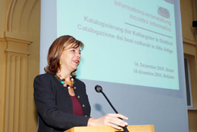 Recentemente, inoltre, Sabina Kasslatter Mur ha riferito ai responsabili dei 70 musei ed enti interessati dal progetto dell’andamento dei lavori. Entro la fine del 2006 dovrebbe essere possibile accedere ad una banca dati digitale comprensiva di tutti gli oggetti catalogati in Alto Adige, e cioè edifici, sculture, dipinti, reperti archeologici e molti altri oggetti d’arte. “La cosa importante”, sottolinea l’assessora Kasslatter Mur, “è che questo catalogo sia accessibile al pubblico: studenti, ricercatori, impiegati della pubblica amministrazione e semplici appassionati d’arte devono avere la possibilità di utilizzare liberamente questo archivio digitale”.