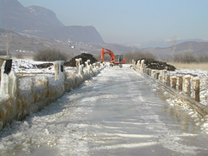 Nuovo stagno nel biotopo Lago di Caldaro: una "strada di ghiaccio" per i mezzi al lavoro