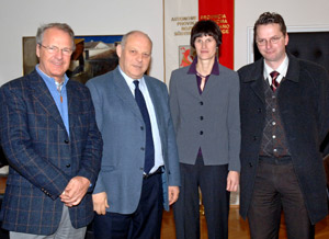 Il presidente Durnwalder con la nuova direttrice della Federazione delle latterie sociali, Annemarie Kaser. A sinistra, il suo predecessore Hainz, a destra il presidente della Federazione Reinalter (Foto USP/Pertl)