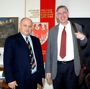 Nella sua relazione il vicesegretario Tappeser ha informato degli sforzi in corso nelle trattative per far ratificare ai vari Paesi i protocolli internazionali riferiti alle Alpi, "in particolare quello sul traffico che più direttamente interessa l'Alto Adige", ha sottolineato Durnwalder. Nel colloquio il Presidente della Provincia ha affrontato anche il problema del personale della sede di Bolzano del Segretariato, attualmente ferma a due collaboratori ma che si chiede alle sedi competenti di raddoppiare per far incidere maggiormente il punto operativo di Bolzano. In merito alle strategie future, Durnwalder ha assicurato "che la Provincia è pronta a mantenere il suo sostegno al Sergretariato permanente, mettendo a disposizione i locali nella sede dell'Eurac e contribuendo anche sul piano finanziario, ma con il presupposto che la sede operativa di Bolzano sia messa nelle condizioni adeguate per lavorare secondo le sue competenze e garantire uno sviluppo idoneo delle sue attività."