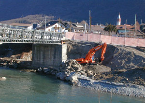 Per risolvere la situazione e ripristinare il collegamento, gli operai dell'Azienda speciale per la sistemazione dei bacini montani sono al lavoro, sotto la direzione di Peter Egger, per risanare il pnte Bailey. "Il ponte verrà completamente ristrutturato, allungato di sei metri e alzato di mezzo metro", spiega il progettista Hanspeter Staffler, direttore dell'Ufficio provinciale Sistemazione bacini montani Sud.