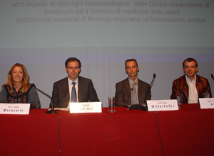 I relatori dell’incontro, professor Christian Fink, della Clinica universitaria di Innsbruck, ed il Dr. Alex Mitterhofer, del Servizio di medicina dello sport dell’Azienda sanitaria di Brunico, hanno illustrato ad oltre 750 persone le più recenti conoscenze della medicina e della ricerca in merito all’articolazione del ginocchio.