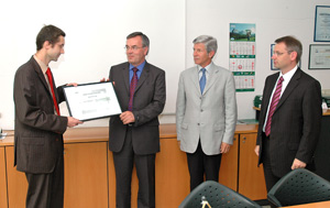 Alla presenza degli assessori provinciali all’Agricoltura, Hans Berger, ed all’Ambiente, Michl Laimer, il presidente Alfons Alber ha ricevuto oggi ufficialmente nella sede di Campiglio, dal delegato della ÖQS Friedrich Khuen, il certificato che attesta questo impegno. Come ha spiegato il responsabile qualità dell’azienda Wilfried von Mersi, “per ottenere questa certificazione l’azienda ha dovuto affrontare un lungo ed impegnativo percorso, valutando costi, tempi e scopi, elaborando un bilancio ecologico per ognuno dei prodotti e ponendosi degli obiettivi da realizzare entro tre anni”. Tali obiettivi sono la riduzione di materiali chimici, della perdita di cartoni fino al 33%, dei rifiuti secchi del 7% e dell’utilizzo di detergenti del 10%. Tali misure consentono anche un risparmio economico per l’azienda. Nell’analisi dell’impatto ecologico, delle prospettive di riduzione di tale impatto e degli obiettivi da porsi è stata determinante, per l’azienda, la consulenza offerta dall’Agenzia Provinciale per la Protezione dell’Ambiente – APPA, che con la collaboratrice Deborah Predenz ha affiancato la Milkon in questa sfida.