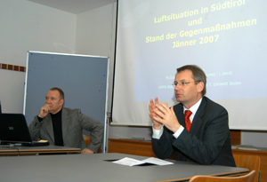 Il direttore dell'APPA, Luigi Minach, ha quindi riassunto il trend delle misurazioni per la valutazione della qualità dell'aria. Per quanto rigurada l'ozono (0³), in correlazione con l'incremento della temperatura media, si registra un leggero trend all'aumento. Per quanto attiene il biossido di azoto (N0²), i valori rilevati nelle stazioni di misura lungo l'autostrada del Brennero superano di molto la media annuale consentita; come ha annunciato Minach, entro giugno 2007 l'apposita commissione tecnica valuterà i dati raccolti e quindi assieme al Ministero per l'ambiente e quello per i Trasporti saranno valutati i possibili ulteriori interventi da adottare. Per quanto riguarda le polveri sottili PM10, a fronte di un anno dall'andamento anomalo ma anche per i provvedimenti di riduzione del traffico adottati, si registrano valori in calo a Brunico (dove i superamenti registrati sono stati solo 9 rispetto ai 30 consentiti in provincia di Bolzano), situazione migliorata anche a Bressanone che non rientra più nella zona del piano di azione; preoccupano ancora i dati riferiti alla conca di Merano e di Bolzano, benchè le medie annuali siano in leggero calo.