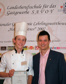 Se nella sezione del concorso riservata ai camerieri gli altoatesini ne sono usciti a mani vuote, non così è stato in quella riservata ai cuochi: al primo posto si è piazzato Christian Pircher Verdorfer, che svolge l'apprendistato presso il ristorante "Goldener Adler" a Chiusa, davanti al compagno di formazione Daniel Spitaler apprendista presso l'"Hotel Weinegg" di Appiano.