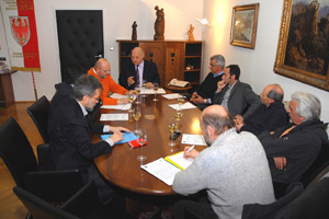 "La discussione, che si è sviluppata in modo cordiale e oggettivo - sottolinea Luis Durnwalder - ha spaziato dalla questione dei sussidi casa all'assegnazione di aree per l'edilizia abitativa e alle soglie di reddito del cittadino per accedere ai benefici provinciali, fino al patrimonio e al reddito depurato da possibili detrazioni per le persone a carico." Il presidente Durnwalder ha illustrato il programma con il quale la Giunta intende risolvere anche il problema degli alloggi legato ai cittadini immigrati e alle nuove tipologie di famiglie e i possibili interventi a favore del ceto medio.