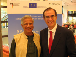 L'assessore provinciale Werner Frick ha incontrato a Berlino il premio Nobel per la pace Mohammed Yunus, esempio perfetto di un'economia al servizio della giustizia sociale e della pace. Frick è in questi giorni nella capitale tedesca per partecipare ad una conferenza europea sulle piccole imprese, nel corso della quale ha presentato il modello di sostegno alle Pmi presente in Alto Adige.