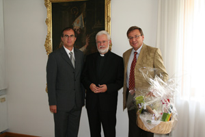 Infine l'assessore Frick e il direttore della Ripartizione Economia Hansi Felder hanno voluto ribadire la "qualità" del cordiale colloquio consegnando al vescovo un cesto con i principali prodotti altoatesini di qualità, tutti con il nuovo marchio.