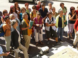 La relatrice Erni Kutter (al centro con il foulard) durante una tappa a Brunico.