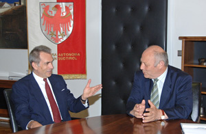 I rapporti tra Italia e Austria con particolare riferimento all'Alto Adige, le questioni legate al traffico alpino e alla collaborazione tra Provincia di Bolzano e Länder austriaci, sono stati i temi al centro del colloquio tra il presidente della Provincia Luis Durnwalder e Christian Berlakovits, nuovo ambiasciatore austriaco in Italia giunto oggi (12 settembre) in visita a Palazzo Widmann.