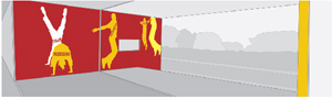 La facciata centrale dell'edificio scolastico, secondo la proposta vincente di Julia Bornefeld, sarà caratterizzata sulla destra dalle figure sagomate di studenti che saltano, prodotte nei colori rosso, giallo ed arancione, mentre sul lato sinistro sarà apposta la scritta con il nome della scuola.